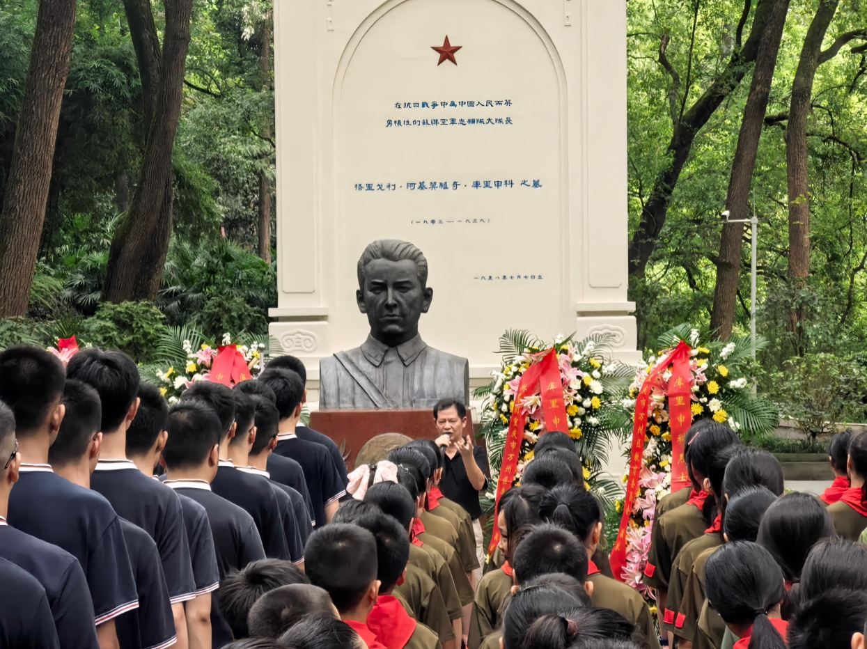 9月1日,熊世忠在库里申科烈士墓园,为万州二中和望江小学200余名学生讲述开学第一课。