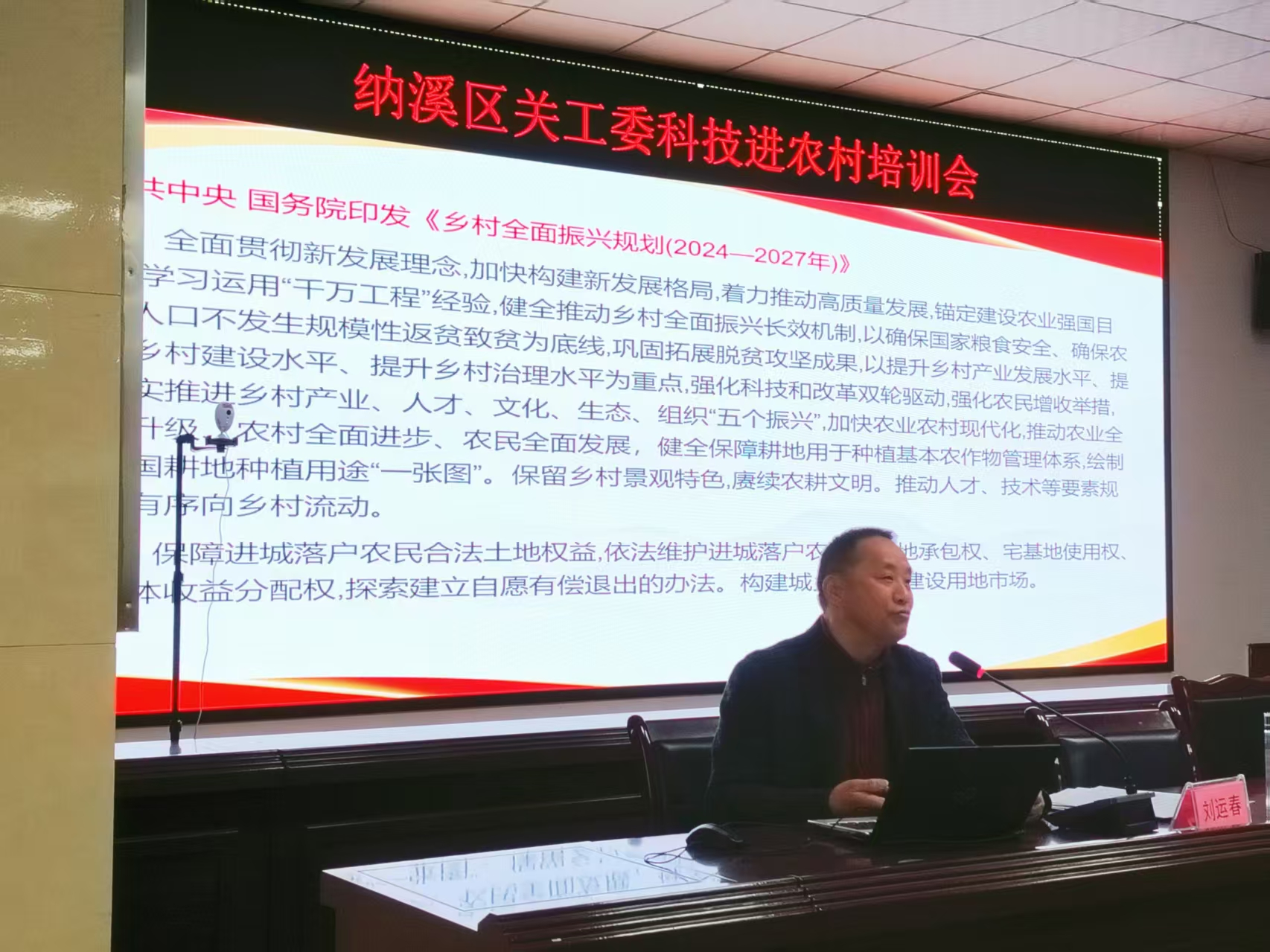 本次培训由区关工委科工委主任、区农业农村局关工委执行主任、高级茶艺师刘运春义务授课。他围绕《习近平新时代中国特色社会主义思想有关农业农村发展的重要论述》《“三农”政策法规》《乡村振兴,纳溪农业如何干》三大核心内容,结合纳溪13个镇街资源禀赋予产业优势,深入浅出解析产业兴旺路径,聚焦区域富民产业发展痛点难点,既有理论高度,又有实操案例,让参训人员受益匪浅。